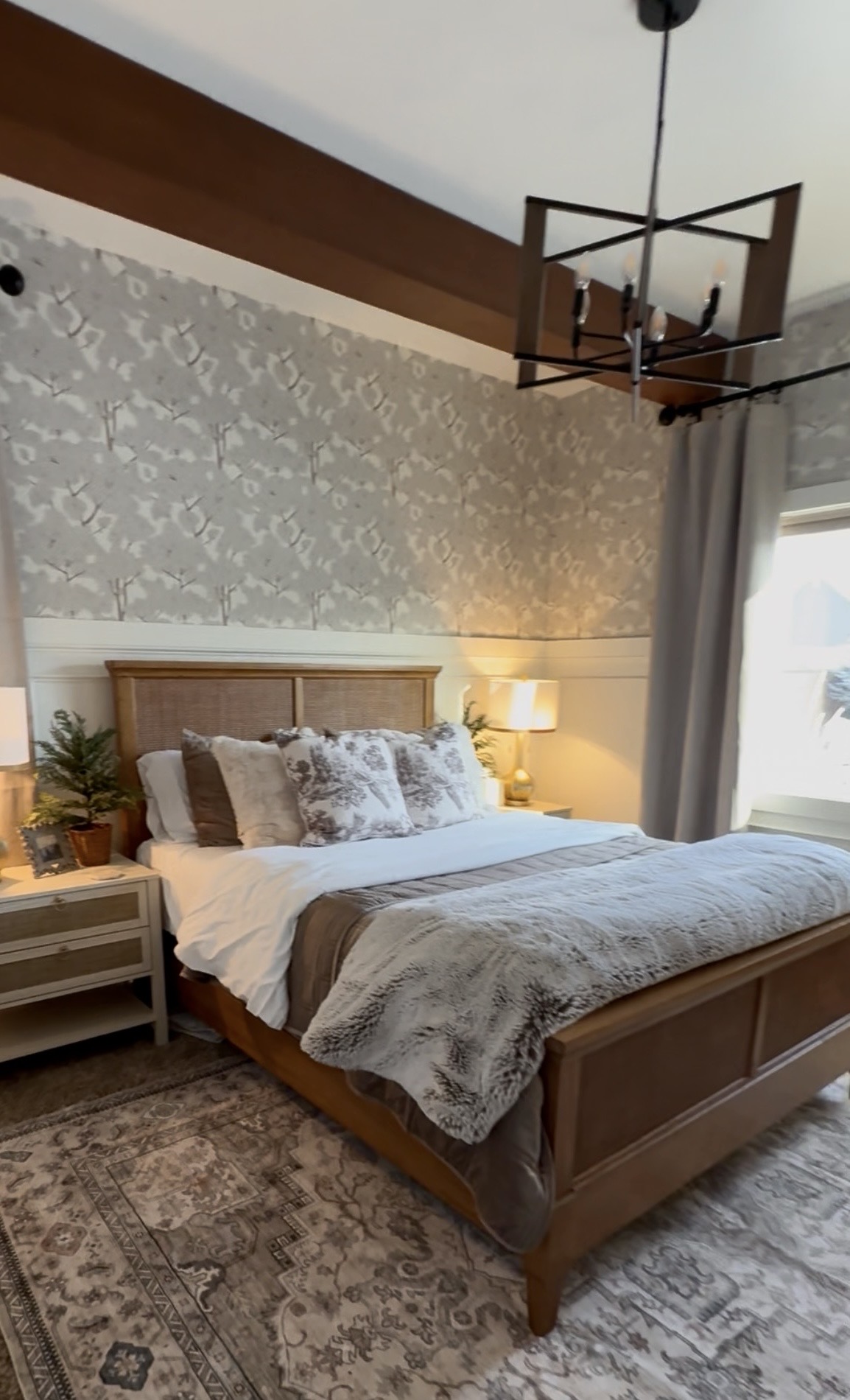 I made these natural wood-looking beams from insulation foam. Supplies for both beams were under $150.
